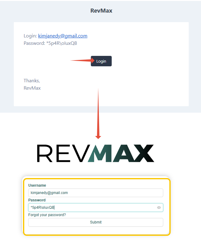 1. Once you receive the link in your email, proceed to set up your access by clicking on the "Log In" button. This will redirect you to the password reset page of the system. Enter the email address and the password provided in the link. Be sure not to add any extra space to avoid errors.